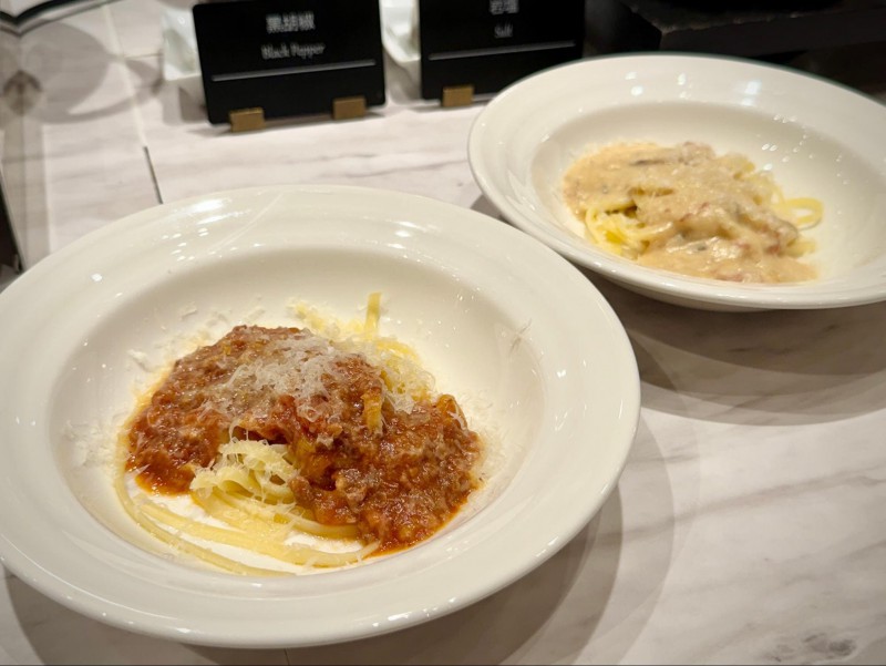 カットした栗がゴロゴロ入っているボロネーゼソース(写真左)は、栗の甘味がしっかり感じられるのでお子さまにもオススメ!