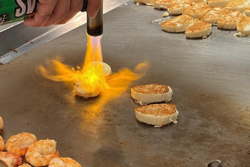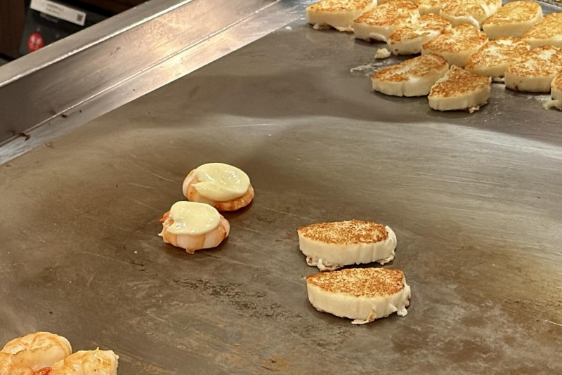 アツアツの鉄板焼きでシェフが目の前で仕上げるプリップリの海老と、なめらかなムースの口当たりがマッチして全然お豆腐っぽさを感じなくてすごい!