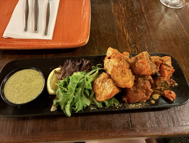 家族連れやカップルで賑わう店内で、私はチキンティッカとベジタブルカレーを注文。