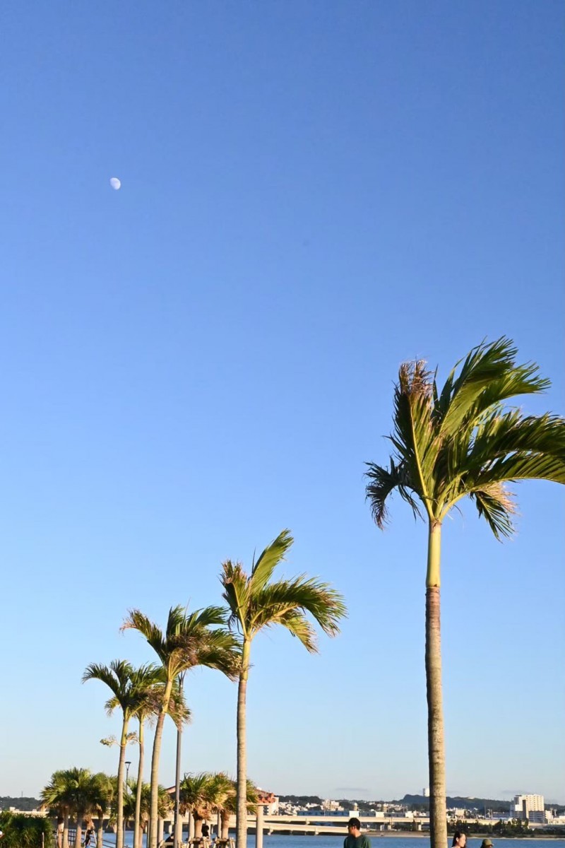 豊見城市にある豊崎都市緑地、通称ヤシの木ロードは、青い海と空とヤシ並木が共演する、これぞ沖縄!と言わんばかりの南国ムード漂う場所。