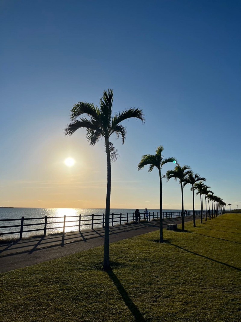 ▲駐車場側から中心を狙えば、ヤシの木が左右に遠近効果で並ぶ、オシャレな写真が撮れます♪