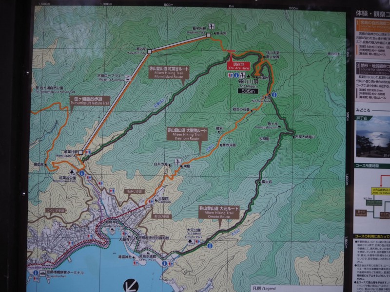 2.登山(紅葉谷コース):本堂まで約1時間半→御山神社まで20分→山頂40分