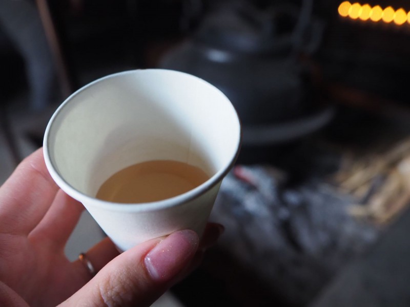 霊火堂内の大釜には消えずの火で沸かしたお湯があり、その霊水を飲むと万病に効き、幸福招来の効果があると伝えられています。