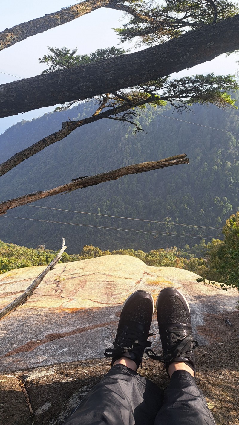 岩に腰掛け、深呼吸すると、髪を撫でる風、澄んだ香りと社殿の静けさが体の奥深くまで染み込み、岩のひんやりとした温度が、火照った体と心を静かにします。