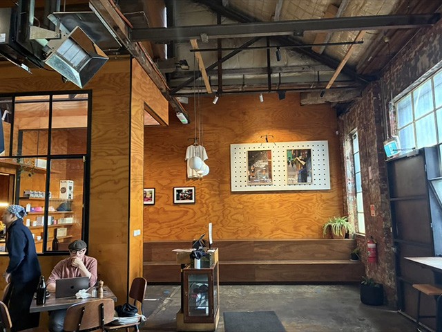 カールトン(Carlton)の静かな通り沿いにあり、倉庫をリノベーションした開放的な店内が印象的。