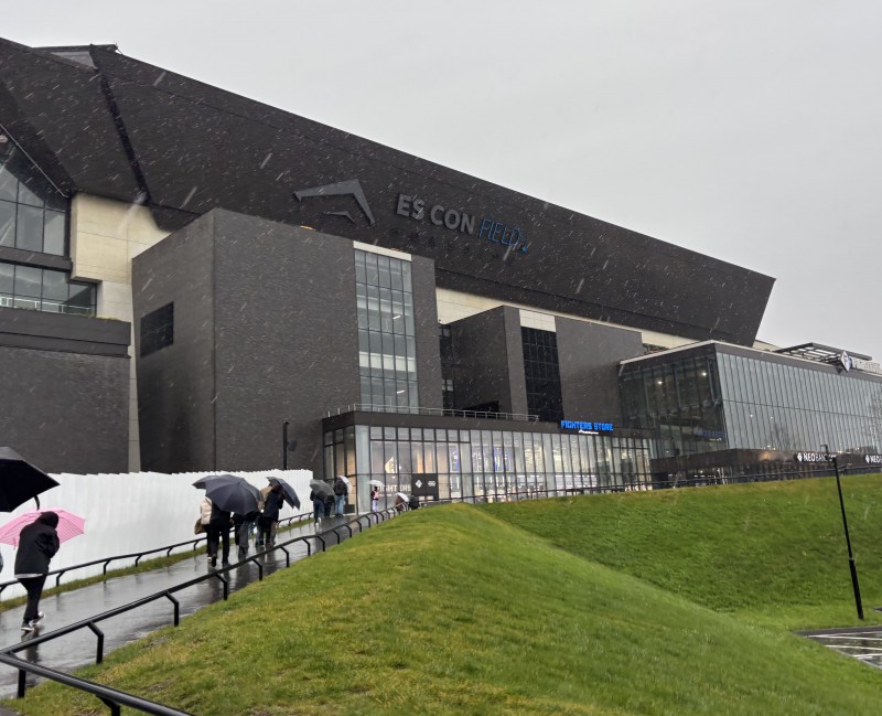車なら約5分の距離ですが、試合がある日は道路が非常に混雑するうえ、試合終了後の時間は車が列をなし、駐車場から出るのもひと苦労。