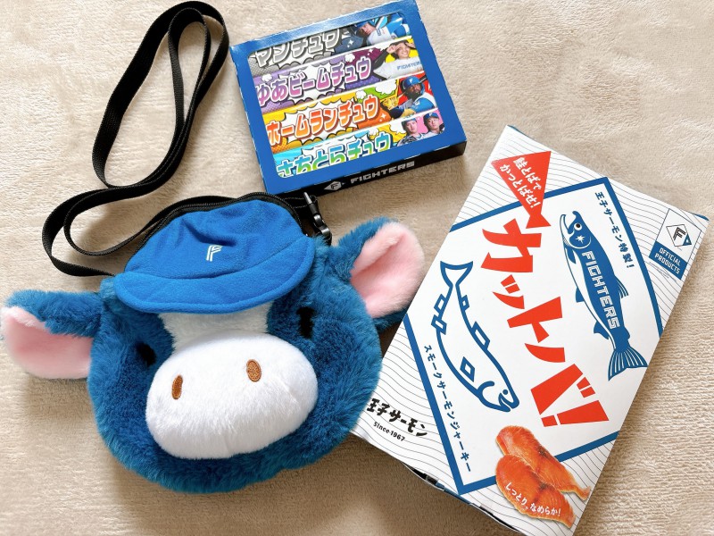 今回購入したのは、ファイターズのキャップをかぶった牛のポーチ。