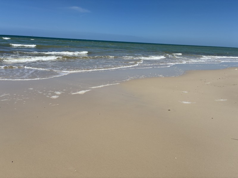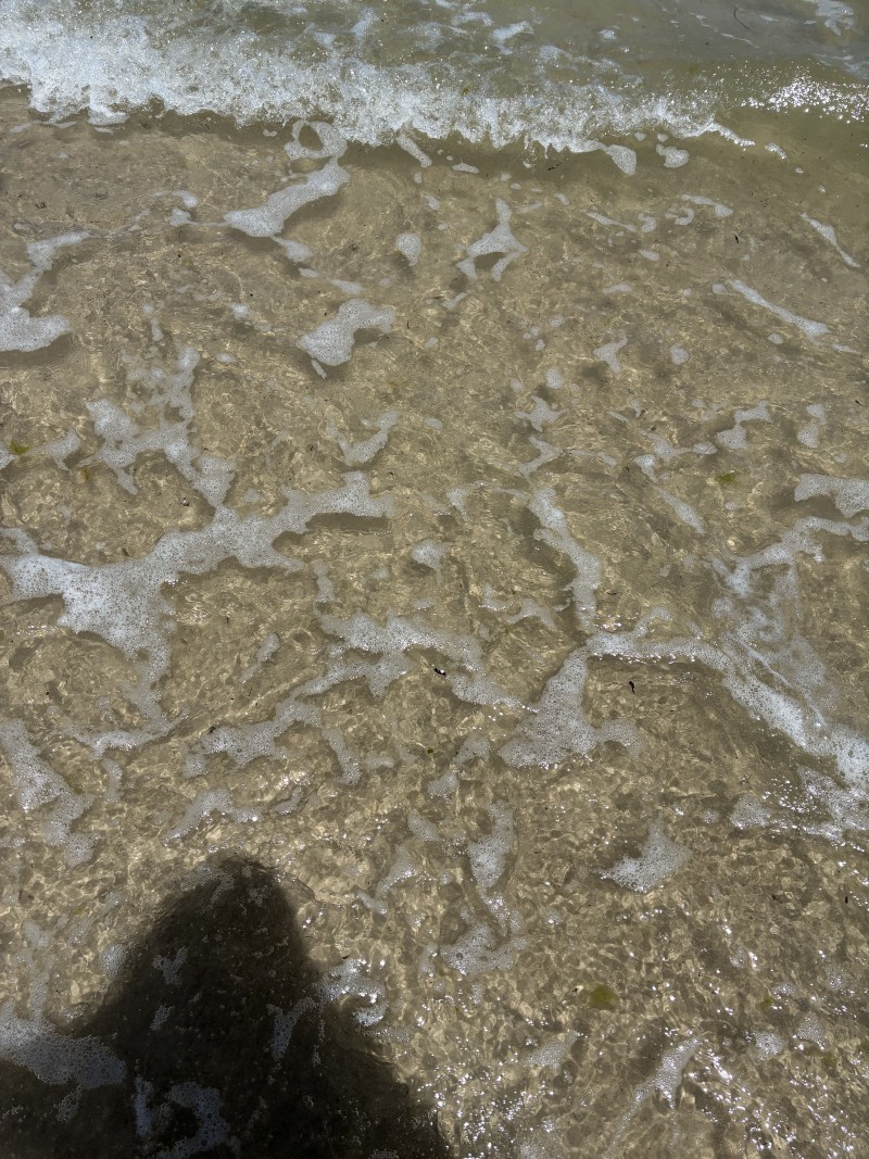 流れてくる細々した木は多かったのですが、海に足だけ浸かってゆっくり景色を眺めてました。