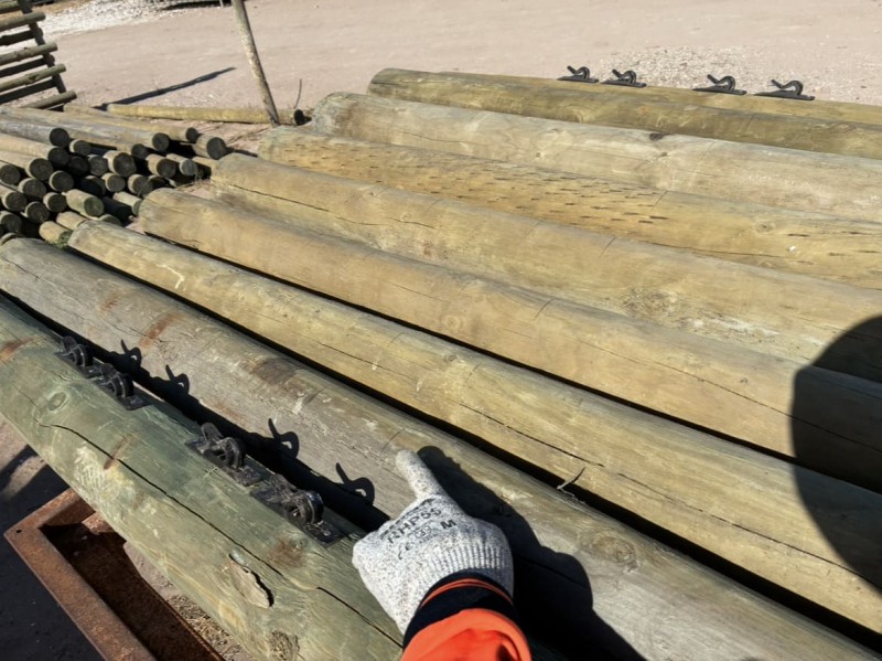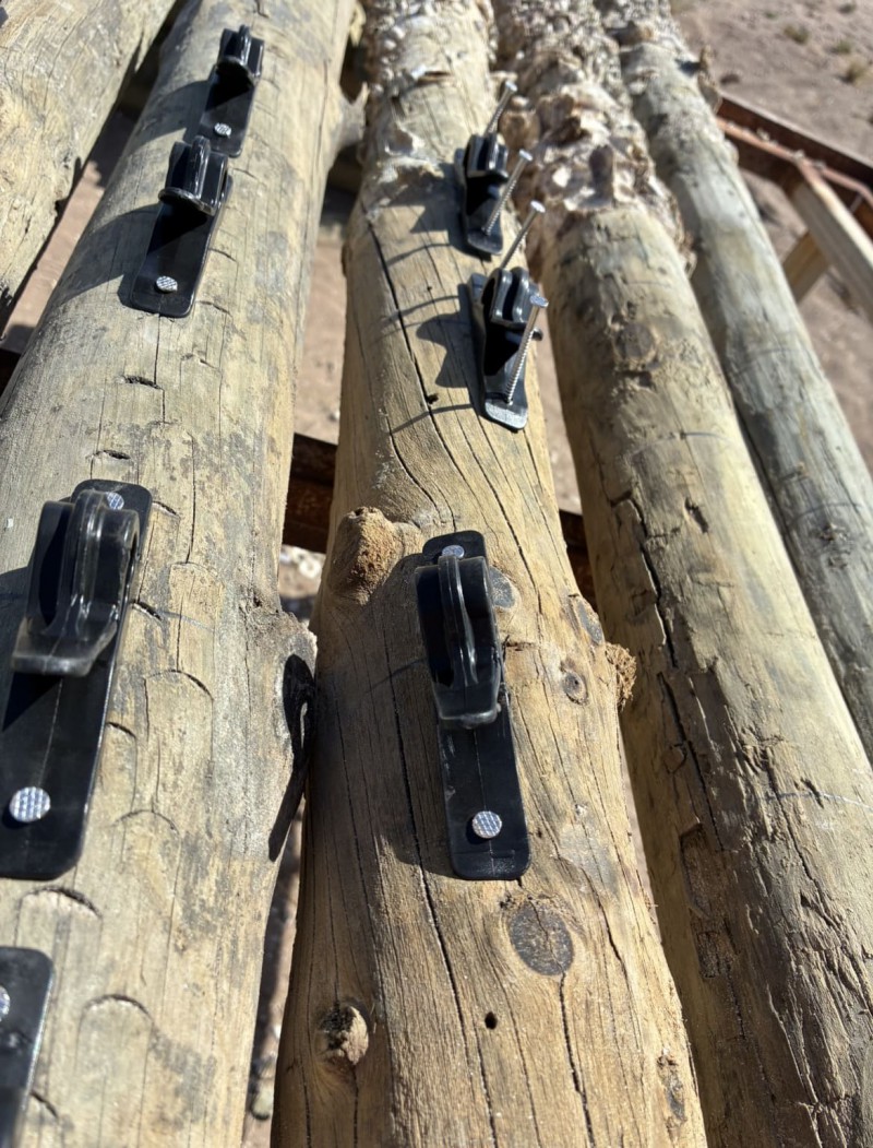 一度使用したものの中から、再利用できる支柱を選び、そこにクリップを取り付けてロープを掛けられるようにしていきます。